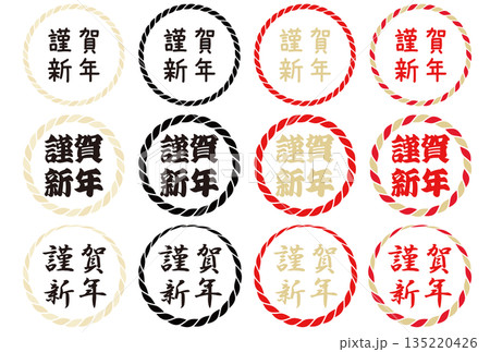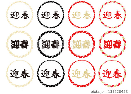 ロープで作られた飾り罫の装飾フレームセット。日本のしめ縄のような和風のビンテージフレーム。