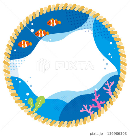 クマノミとマリンロープフレーム背景イラスト素材