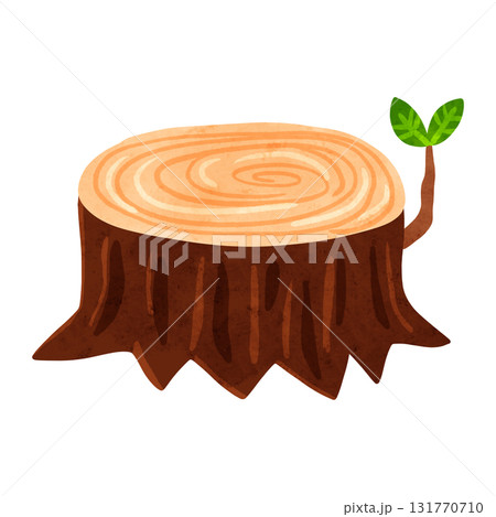 小さい枝が出ている切り株 水彩風手描きイラスト