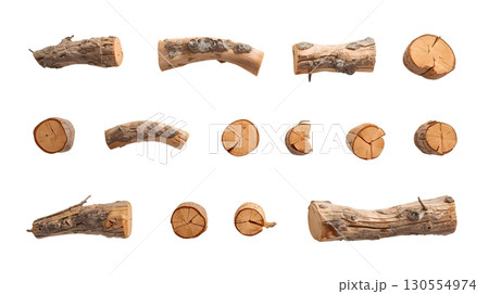 白バックにたくさんの丸太のイラストセット