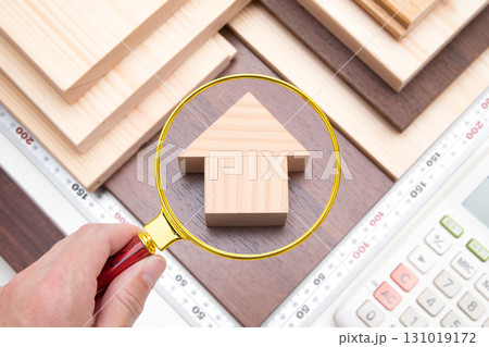 フローリングサンプルから色を選ぶ女性手元 家づくり打ち合わせ