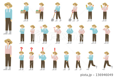 フラットイラスト:農家の男女セット(表情あり)