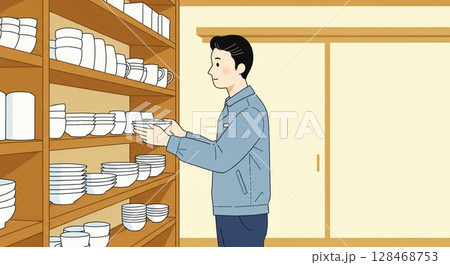 衛生管理の基本!きれいに洗浄された食器を整理する手元