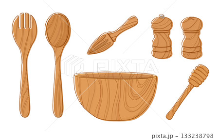 木製のキッチン用品の線画イラスト