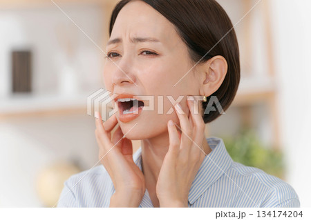 歯が痛いシニア女性