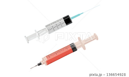 イラスト素材:ワクチンや予防接種の注射・注射器(バリエーションのセット)
