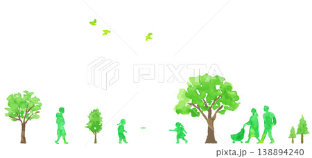 家族でお出かけする親子の人物イラストセット(外出・散歩・育児シーン)