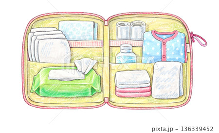 おむつ替えポーチの中身イラスト 外出時の育児必需品