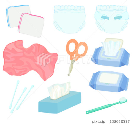 赤ちゃんのケア用品イラストセット 育児 ベクター素材