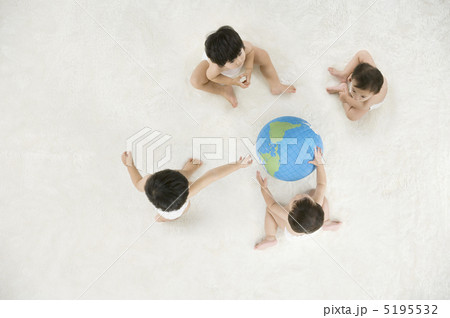 地球儀と日本人の赤ちゃん
