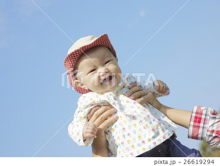 高い高いをしてもらう赤ちゃん