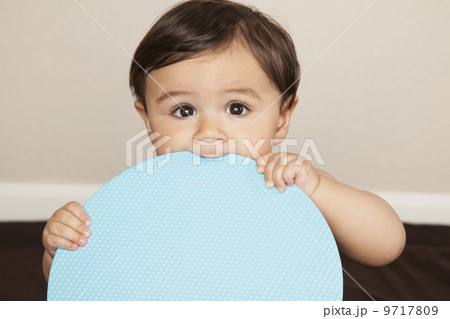 Studio shot of baby playing with blocks