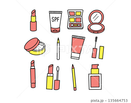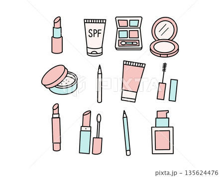 化粧品やメイクアップ用品・スキンケア用品の手書きアイコンセット