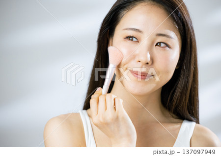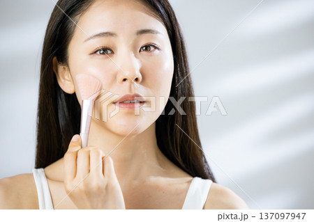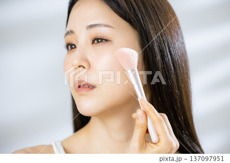 化粧する女性の手元 メイクする手元 パウダー