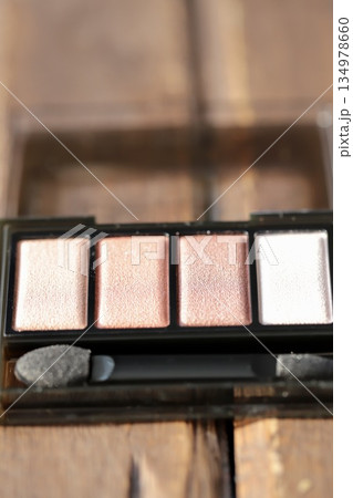 アイシャドウパレットとメイクブラシとリップスティックとチーク
