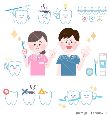 シンプル イラスト デンタルケアのイメージ アイコンセット