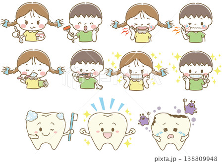 歯磨き 虫歯予防 歯のキャラクターイラスト セット