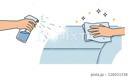 愛車のお手入れ ピカピカに窓拭きしているイラスト