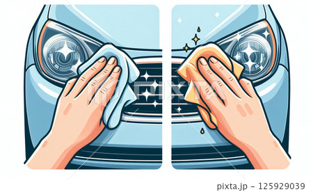 タオルでピカピカに:ヘッドライトのお手入れイラスト
