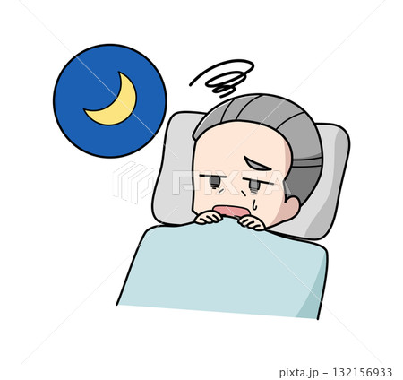 眠れない高齢男性のイラスト