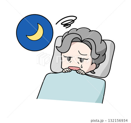 眠れない高齢女性のイラスト
