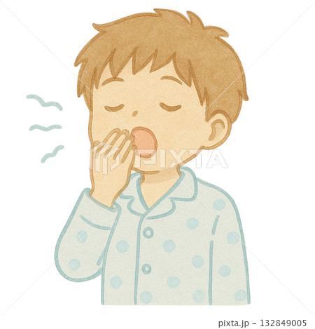 温かい飲み物を飲んでよく眠れた男性のイラスト