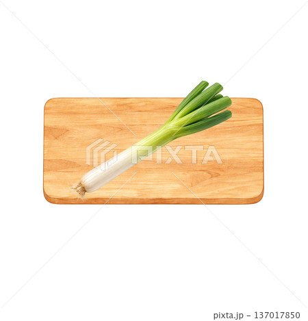 長ネギと木製まな板 水彩シンプル 横構図 切り抜きPNG