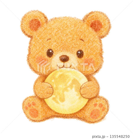 色鉛筆風の満月を抱く子グマのイラスト
