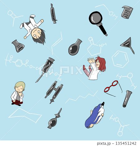 ビーカー フラスコ 実験器具 青 ランダム パターン 背景