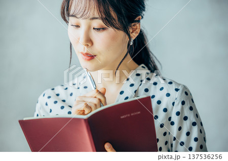 手帳を持つ若い女性