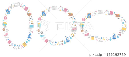 カラフルなストライプデザインセット ピンクと紫のフレーム・バナー・リボン素材