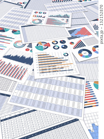 ビジネス資料、ビジネスデータをプリントした複数の資料