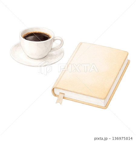 水彩風 コーヒーカップとノートブックのイラスト 春 新生活 パステルカラー 切り抜き素材
