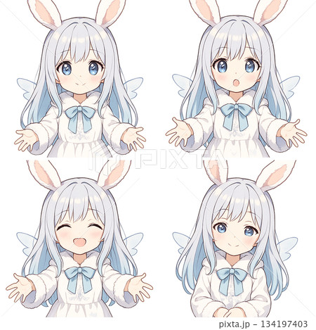 ピースサインをする銀髪のかわいい女の子のイラスト