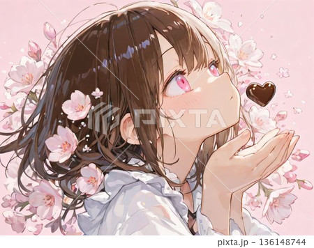 バレンタインチョコと銀髪のかわいいメイド服の女の子のイラスト