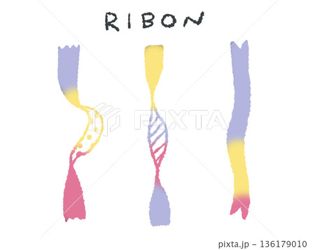 アイコンやシンボルマークとして、デザイン時に使いやすいカラフルな手描きイラスト・リボン