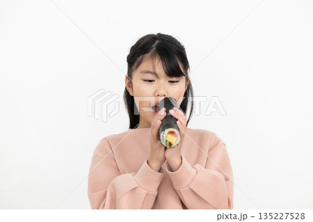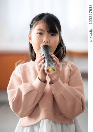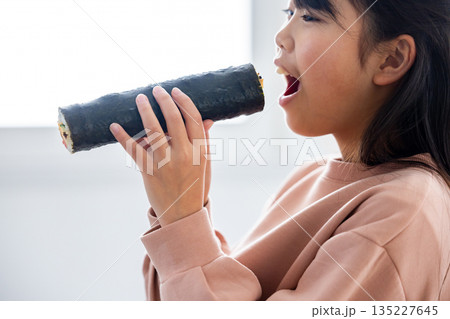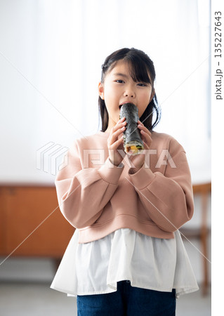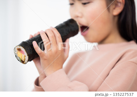 恵方巻きを丸かぶりする女の子