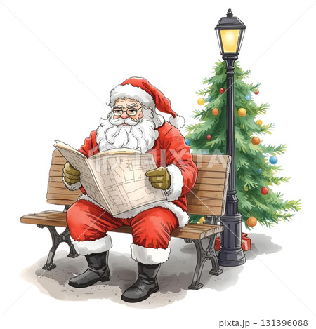 ピンクのセーターを着て椅子に座り、真剣な表情で新聞を読んでいるシニア女性のイラスト。