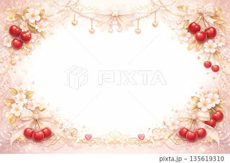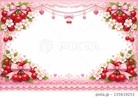 さくらんぼとリボンのガーリーレースフレーム