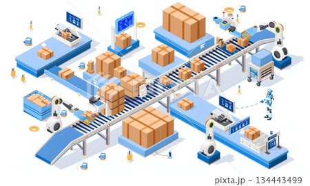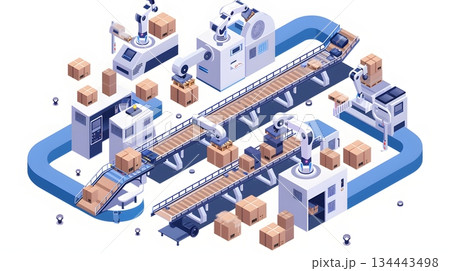 AIロボットと工員のハイタッチ ストックイラスト素材