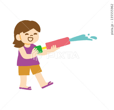 夏休み 水鉄砲で遊ぶ女の子 イラスト