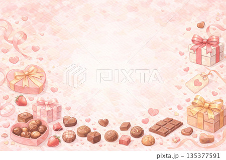 バレンタインシリーズ:チョコとリボンのバレンタイン水彩背景