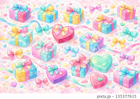 バレンタインシリーズ:カラフルギフトとリボンの華やか背景