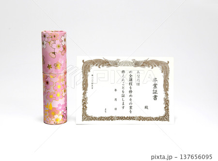 卒業式で先生から卒業証書・賞状・感謝状を受け取る制服の中学生・高校生・小学生の女の子(アジア人)