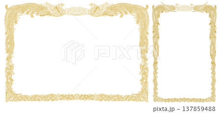 白背景にゴールドのビンテージフレームとボタニカルなオーナメントのセット15