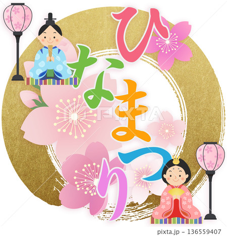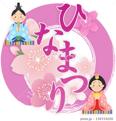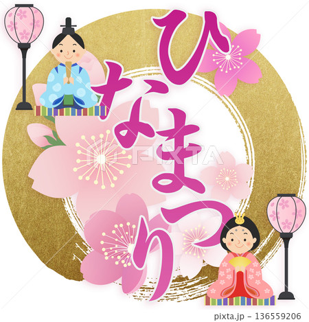 ひな祭りの文字とひな人形のイラスト 桃の節句