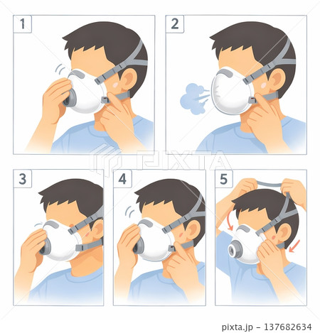 防毒マスクの正しい装着手順イラスト 呼吸用保護具フィットチェック手順