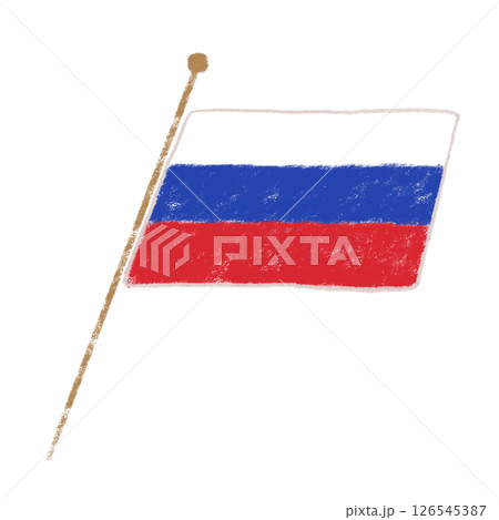 ポール付きのロシアの国旗 斜め クレヨンタッチ