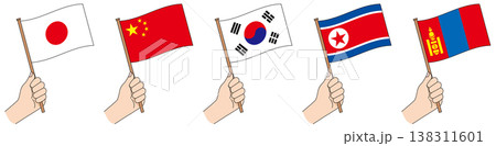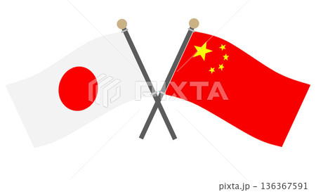 中華人民共和国と日本の国旗と国際交流イラスト素材