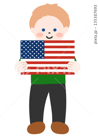 アメリカの国旗を両手で持つ子ども